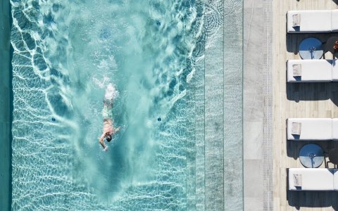 Pour compléter le voyage vers le bien-être, une salle de relaxation avec vue sur la mer et une salle de sport, dotée d'équipements Technogym de dernière génération, donnent sur un espace en plein air, avec solarium, douches, espace de conversation et jardin planté d'essences parfumées.